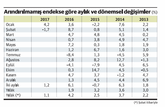 İki ay, çok büyük bir ölçü sayılmaz. O yüzden şubat itibariyle yıllık durumumuz nedir, ona bakmakta yarar var.
