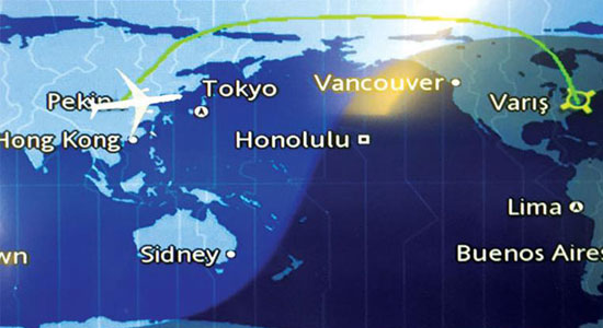 Cumhurbaşkanı Tayyip Erdoğan, Washington’da ABD Başkanı Trump ile görüşmek üzere, dün özel uçak ‘CAN’ ile TSİ 09.25’te Pekin’den ABD’ye hareket etti. Erdoğan’ın uçağı 14 saat boyunca gündüz uçuşu yaptı, hiç gece olmadı. Kuzey Buz Denizi ve Bering Boğazı’nı aşan uçak, Alaska üzerinden Amerika kıtasına geçti. Erdoğan’ın uçağı Washington’a vardığında gün hâlâ pazartesiydi. Yani ‘CAN’ yolcuları için pazartesi günü 12 saat uzayarak 36 saat yaşandı. Erdoğan döndüğünde Ankara-Pekin, Pekin-Washington, Washington-İstanbul hattıyla Dünya üzerinde bir daire çizmiş