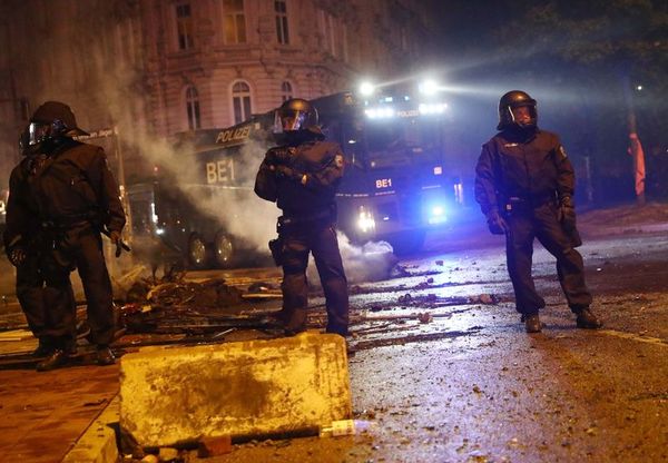 "Tüm Hamburg polislerden nefret ediyor." sloganları atan göstericiler, parke taşlarını sökerek polise fırlattı.