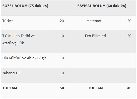 Soruların derslere göre dağılımı ise şöyle olacak: