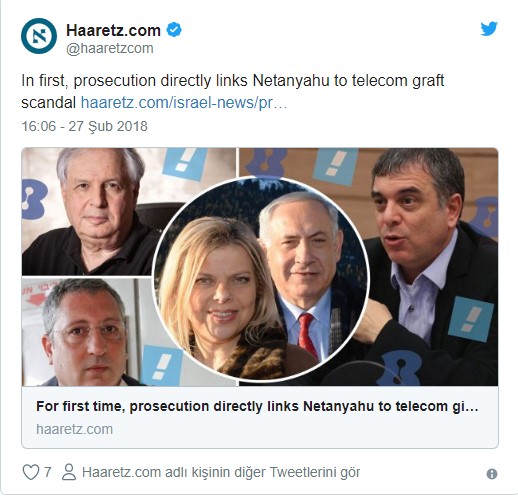 İsrail'in Haaretz gazetesi, başsavcılığın, Netanyahu'yu telekom devi Bezeq ile rüşvet alışverişi dosyasıyla ilk kez doğrudan ilişkilendirdiğini duyurdu.