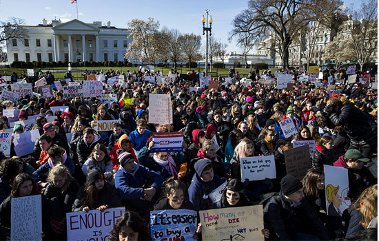 Başkent Washington'da önce Beyaz Saray önünde bir araya gelen binlerce öğrenci Trump yönetimine "silaha erişim yasalarını değiştirmesi" çağrısında bulundu. ABD'nin en önemli silah lobisi olan Ulusal Tüfek Birliği (NRA) karşıtı sloganlar atan öğrenciler daha sonra ABD kongresine kadar yürüdü.