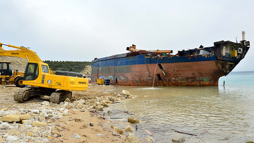 Çanakkale'de, yaklaşık 4 yıl önce hukuk sorunları nedeniyle seferden men edilerek demirletildiği Bozcaada açıklarında fırtına yüzünden Beylik Koyu sahiline sürüklenen 88 metre uzunluğunda ve 2 bin 250 groston ağırlığındaki "Mercy God" adlı kuru yük gemisi, söküm işlemlerinin tamamlanmasının ardından inşaat demiri olarak ekonomiye kazandırılacak.