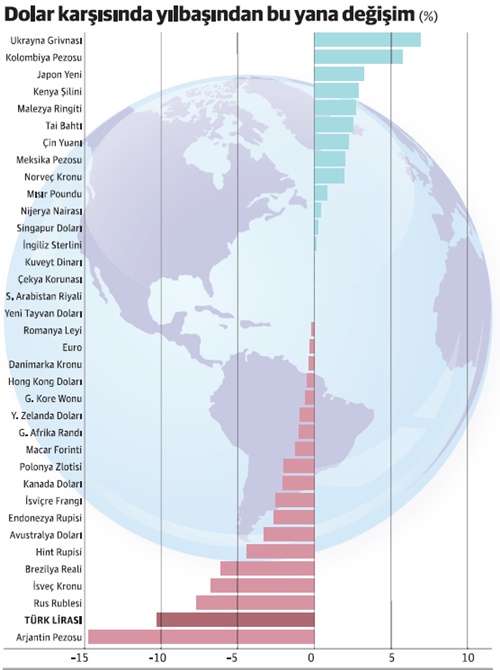 Brezilya'dan Rusya'ya, Ermenistan'dan Kongo'ya kadar birçok gelişmekte olan ülke bir süredir faiz oranlarını indiriyordu. Ocak 2015'ten bu yana gelişmekte olan ülkelerde yüzlerce faiz indirimi yapıldı ve o dönemde yüzde 7 olan ortalama borçlanma maliyeti bu yılın başında yüzde 6'nın altına indi. Ancak büyük merkez bankalarının teşviklerden çıkmaya başlaması oyunu bozdu ve dolar güçlenmeye başladı. Gelişen ülkelerin merkez bankaları dolardaki çıkışı durdurmak için harekete geçti. Yıl başından bu yana parası dolar karşısında en çok değer kaybeden iki ülkeden biri olan Türkiye'de Merkez Bankası son Para Politikası Kurulu (PPK) toplantısında politika faizi ve faiz koridorunda değişiklik yapmazken, geç likidite penceresi faizini 75 baz puan artırmıştı.