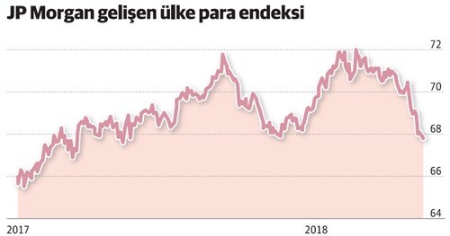 ABD ekonomisinin güçlü seyrini koruduğu beklentisinde değişiklik yaratmayan tarım dışı istihdam ve ücretler verisinin ardından bu yılın zirve seviyelerine yakın seyrini koruyor. Dolar endeksi 92.08 ile 2018'in en yüksek seviyelerinde bulunuyor. Euro da 1.20 doların altındaki seyrini sürdürüyor. JP Morgan gelişen ülke para endeksi ise geçen hafta yüzde 1.7 ile Donald Trump'ın şok seçim zaferinin yarattığı sarsıntıdan bu yana en büyük haftalık gerilemeyi kaydetti. Endeksteki düşüş son iki haftada yüzde 3'ü aştı.