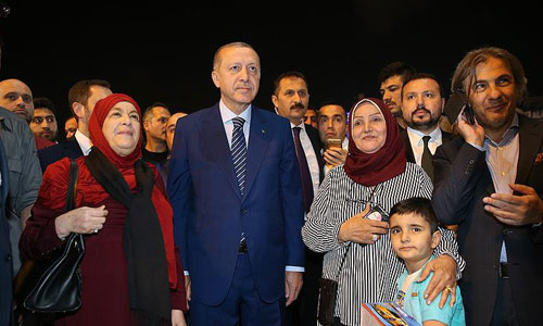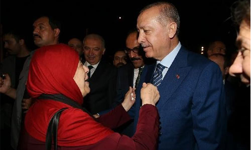 Erdoğan'ın yanına yaklaşan bir vatandaş, kendisine Ak Parti Rozeti takmasını istedi. Erdoğan'da yanındaki görevlilere dönerek Ak Parti rozeti istedi. Kısa sürede bulunan Ak parti rozeti Cumhurbaşkanı Erdoğan'a verildi. Erdoğan'ın vatandaşa rozetini takmasının ardından ve hatıra fotoğrafı çekildi.
