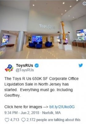 2013'ten bu yana kâr açıklamayan Toys "R" Us'ın borcu 5 milyar doları aştı ve Eylül 2017'de iflas başvurusunda bulundu.