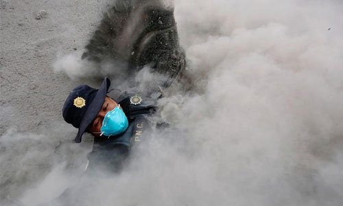 Başkent Guatemala City'nin 40 kilometre güneybatısındaki Fuego Yanardağı kaya, duman ve kül püskürtmeye devam ediyor.