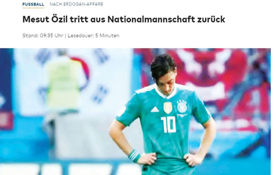 Mesut Özil suskunluğunu öyle bir bozdu ki, tam anlamıyla dünyayı salladı. Cumhurbaşkanı Recep Tayyip Erdoğan’la fotoğraf çektirmesi ve Almanya Milli Takımı’nın 2018 Dünya Kupası’na erken veda etmesi sonrası adeta ‘günah keçisi’ ilan edilen yıldız futbolcunun, “Kazanınca Alman, kaybedince göçmen. Artık yeter! Irkçılık ve saygısızlık hissettiğim için artık Almanya forması giymeyeceğim” şeklindeki sözleri tüm dünyada büyük yankı yarattı. Irkçılık ve göçmen politikaları ile ilgili tartışmaları iyice alevlendiren bu olay, Avrupa ve ABD basınında manşetlere taşındı. Celal Özcan'ın Hürriyet'teki haberinde, bazı gazetelerin konuyla ilgili başlık ve yorumları şöyle yer aldı: