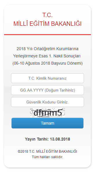 13 Ağustos 2018 / Yerleştirmeye Esas 1. Nakil sonuçlarının açıklanması