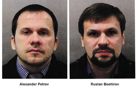 İngiliz polisinden yapılan açıklamada, Skripallerin zehirlenmesi olayında Alexander Petrov ve Ruslan Boshirov adlı Rus vatandaşlarının şüpheli olarak tespit edildiği bildirildi.