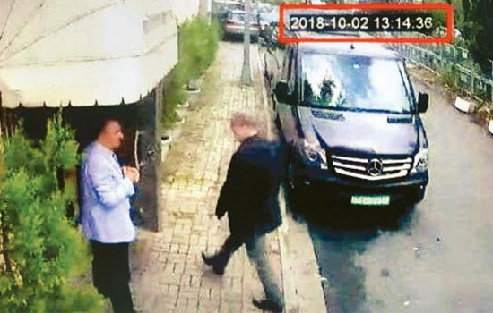 İstanbul’daki Suudi Konsolosluğu’na girdikten sonra kendisinden bir daha haber alınamayan gazeteci Cemal Kaşıkçı’nın konsolosluğa girerken çekilen görüntüleri, Kaşıkçı’nın çalıştığı Washington Post gazetesi tarafından paylaşıldı. Soruşturmaya yakın bir kişinin gazeteye verdiği fotoğrafta Kaşıkçı’nın konsolosluğa giriş tarihinin 2 Ekim saat 13:14 olduğu görülüyor.