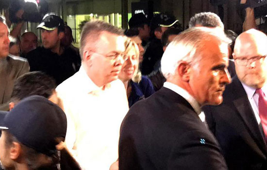 Brunson ve eşi Norine Brunson, akşam saatlerinde İzmir Adnan Menderes Havalimanı CIP kapısına geldi. ABD'nin Ankara Büyükelçiliği Maslahatgüzarı Jeffrey M. Hovenier da Brunson çiftine havaalanına kadar eşlik etti.