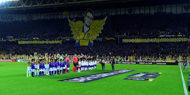 Fenerbahçe'nin Avrupa mesaisinde; Galatasaray derbisinde kalp krizi geçirerek hayatını kaybeden sarı lacivertli taraftar Koray Şener unutulmadı.