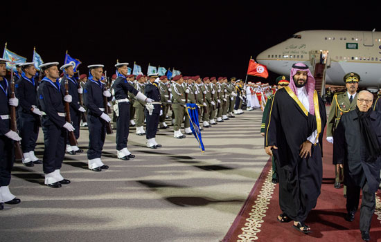 Suudi Arabistan resmi haber ajansı SPA'nın haberine göre, Veliaht Prens Bin Selman'ı havalimanında Tunus Cumhurbaşkanı El-Baci Kaid es-Sibsi karşıladı. Sibsi ve Bin Selman daha sonra Kartaca Sarayı'nda bir araya geldi.