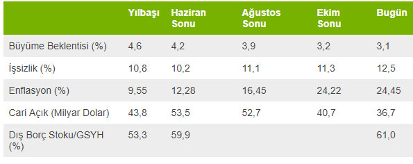 Kaldı ki mesela büyüme beklentisi burada oldukça yüksek. Merkez Bankası Beklenti Anketi'ne Kasım ayı itibariyle yüzde 3,1 olarak yansımış olan büyümenin bu yükseklikte olması bugün artık pek mümkün görünmüyor. Büyümenin sıfıra yakın gerçekleşeceğini tahmin ediyorum.