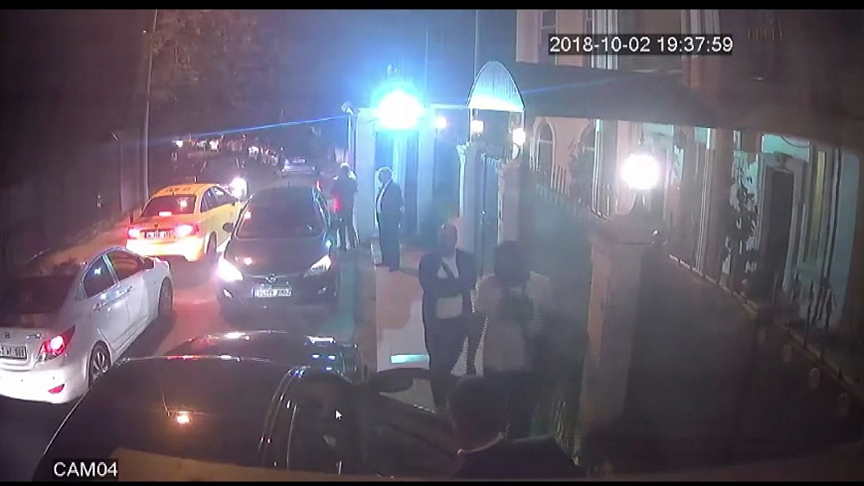 Şüphelilerden, Maher Abdulaziz M. Mutreb, Thaar Ghaleb T. Alharbi, Badr Lafi M. Alotaibi, Mohammed Saad H. Alzahrani, Turki Musharraf M. Alshehri, Waleed Abdullah M. Alshehri, Faad Shabib A. Albalawi, Mustafa Mohammed M. Almadani, Saif Saad Q. Alqahtani ve Salah Mohammed A. Tubaigy sırasıyla 09.50 ile 10.57 arasında ayrı ayrı başkonsolosluğa geldi.
