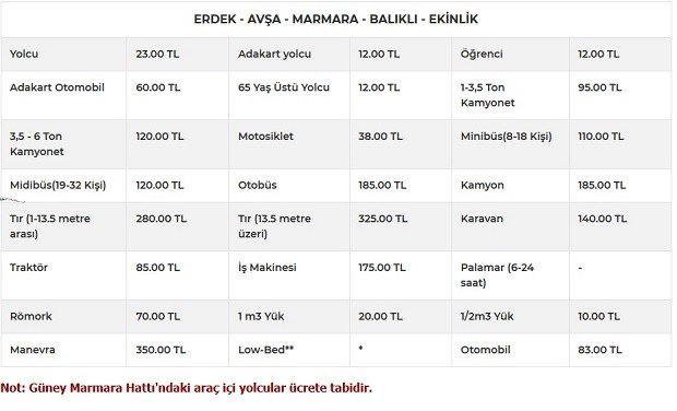 "Boğaz ve adalar hatlarında 18 Mayıs 2019 tarihinden itibaren geçerli olmak üzere, fiyat tarifesinde güncelleme yapılmıştır. Deniz ulaşım sektörü maliyetlerindeki yüksek artış nedeniyle (Akaryakıt, gemi iskele bakım/tutum, yedek parça vs.) gemi geçiş ücretlerinde ortalama %24.7 oranında fiyat güncellenmesine gidilmiş olup fiyat güncelleme oranı; üretici fiyat endeksi, tüketici fiyat endeksi ve ÖTV'siz yakıt fiyat artış oranları dikkate alınarak belirlenmiştir.”