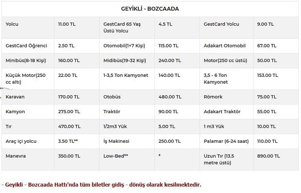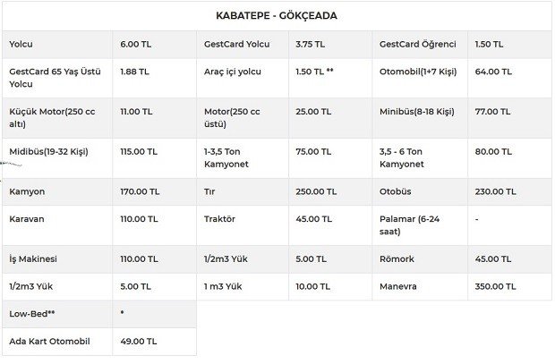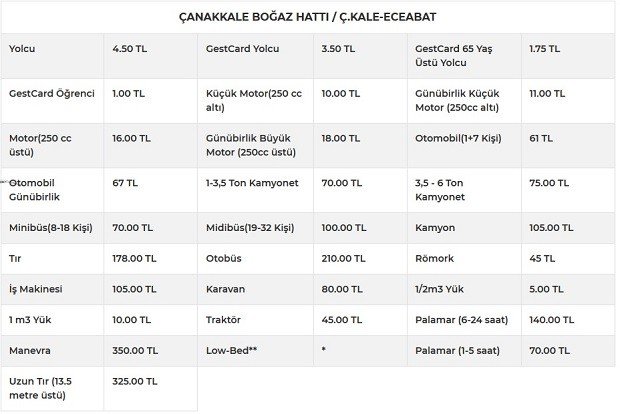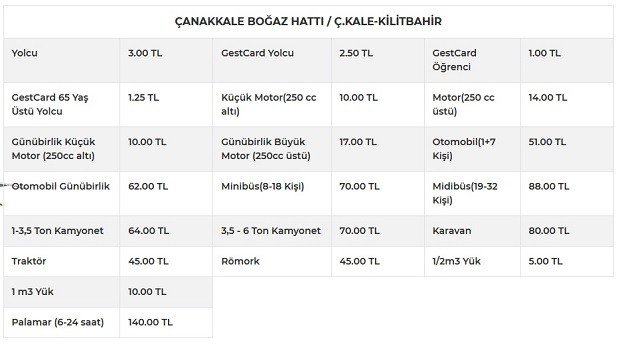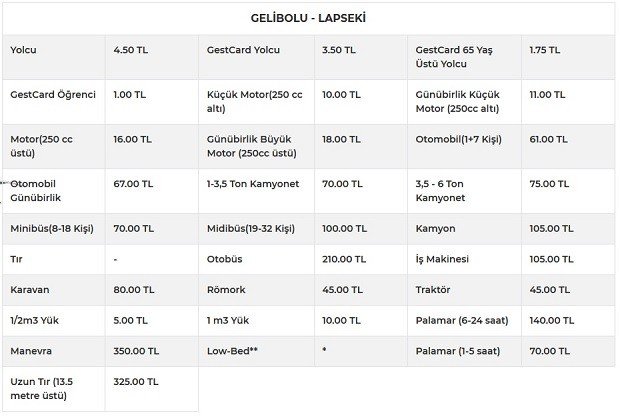 Gelibolu-Lapseki otomobil günlük 67 TL oldu.