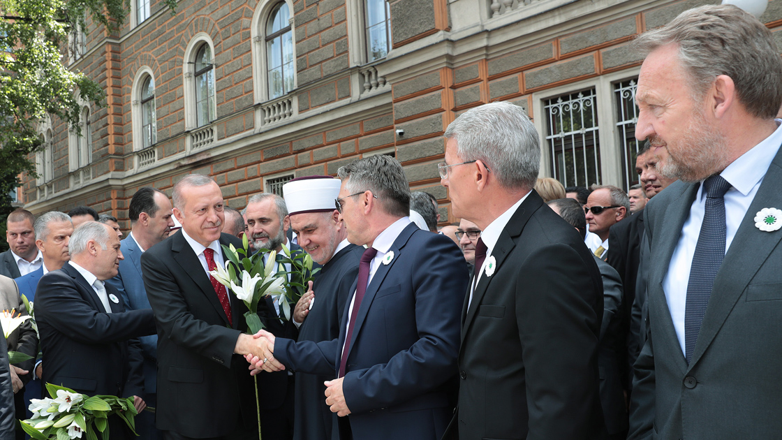 Törene Cumhurbaşkanı Erdoğan ve eşi Emine Erdoğan'ın yanı sıra Bosna Hersek Devlet Başkanlığı Konsey üyeleri Şefik Caferoviç ve Zeljko Komşiç, Bosna Hersek Halklar Meclisi Başkanı Bakir İzzetbegoviç, Dışişleri Bakanı Mevlüt Çavuşoğlu, Hazine ve Maliye Bakanı Berat Albayrak, Milli Savunma Bakanı Hulusi Akar, Tarım ve Orman Bakanı Bekir Pakdemirli, Ulaştırma ve Altyapı Bakanı Cahit Turhan, Milli İstihbarat Teşkilatı Başkanı Hakan Fidan, Cumhurbaşkanlığı İletişim Başkanı Fahrettin Altun ve Cumhurbaşkanlığı Sözcüsü İbrahim Kalın da katıldı.