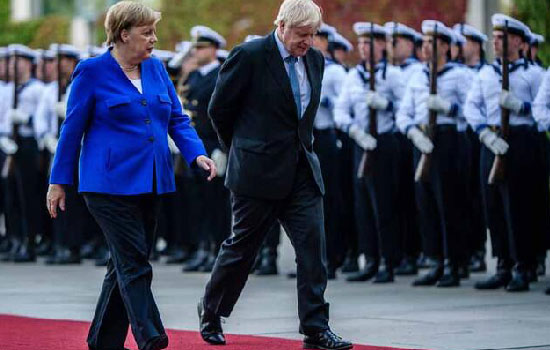 Başbakan seçildikten sonraki ilk resmi yurt dışı temasları için önce Almanya’ya giden Johnson burada Almanya Başbakanı Merkel ile katıldığı resmi törende elleri arkada yürüdü.