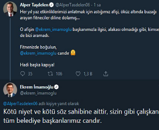 Taşdelen’e gelen tepkilere dayanamayan İBB Başkanı Ekrem İmamoğlu destek için, “Kötü niyet ve kötü söz sahibine aittir, sizin gibi çalışkan tüm belediye başkanlarımız candır” ifadelerini kullandı. (Sözcü)
