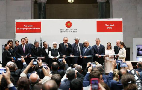 Birleşmiş Milletler 74'üncü Genel Kurul görüşmeleri için New York'ta bulunan Erdoğan, Alexander Hamilton ABD Gümrük Binası'nda Ara Güler Sergisi'nin açılışını yaptı ve Fahir Atakoğlu müzik dinletisine katıldı.