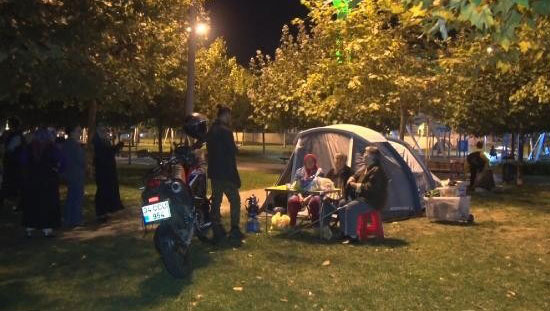 Güngören 15 Temmuz Şehitler Parkı'nda düne göre azalsa da bazı ailelerin geceyi geçirmek için çadır kurdukları görüldü. Vatandaşlar, çocukları depremden dolayı tedirgin olduğu için parkta kalmaya devam ettiklerini bildirdiler.