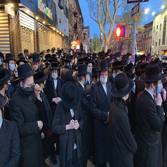 Yüzlerce Ortodoks Yahudi New York sokaklarında Yahudi cemaatinin önemli isimlerinden Haham Chaim Mertz’in cenaze töreni için sosyal mesafe önlemlerini hiçe saydı. Blasio Twitter üzerinden paylaştığı mesajda konuyla alakalı, "Williamsburg’da bu gece asla kabul edilemeyecek bir şey oldu: bu salgının ortasında büyük bir cenaze toplantısı" ifadelerine yer veren Belediye Başkanı, "Duyduğumda, kalabalığın dağıldığından emin olmak için bizzat oraya gittim. Korona virüsle savaştığımız sürece gördüklerime müsamaha gösterilmeyecektir" dedi.