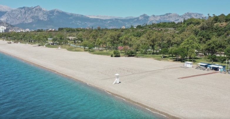 Bu kapsamda Türk turizminin amiral gemisi olarak anılan Antalya'da, her yıl milyonlarca yerli ve yabancı turistin akınına uğrayan dünyaca ünlü Konyaaltı Plajı'nda Kovid-19 salgınının yayılmasını önlemek amacıyla bir dizi tedbir alındı.