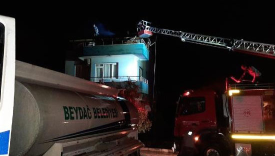 İzmir'in Beydağ ilçesinde, 3 katlı bir binanın çatısına yıldırım isabet etmesi sonucu yangın çıktı. Olayda ölen ya da yaralanan olmazken, binada hasar oluştu.