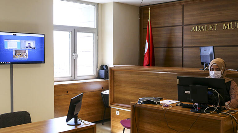 Taraf avukatı duruşmaya, elektronik imza yöntemiyle kimlik doğrulaması yaptıktan sonra bürosundan bağlandı. Mahkeme salonuna kurulan ekranda, avukat ve salonun görüntüsü yer aldı.