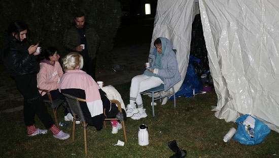 Geceyi çadırda geçiren Ateş, "Her şey saniyeler içinde ama uzun sürdü. Evden dışarıya çıktığımızda her şey toz duman olmuştu. Yıkılan bir bina vardı. Çok korktuk. Eve gidemiyoruz. Artçılar devam ediyor. Çadırda kalacağız" dedi.