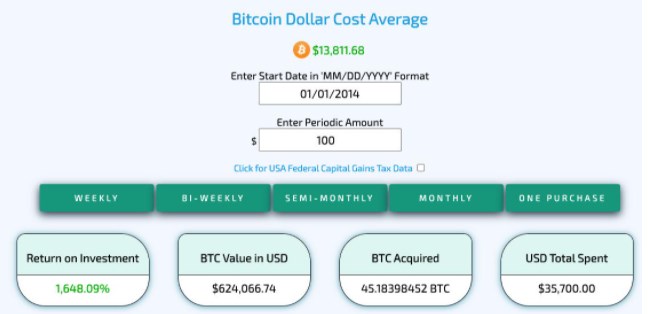 Örneğin bir yatırımcı, Ocak 2014'ten beri Bitcoin'e ortalama 100, toplamda ise 35.700 dolar yatırsaydı, günümüzdeki getirisi yüzde 1.648, yani yaklaşık 589 bin dolar olacaktı.