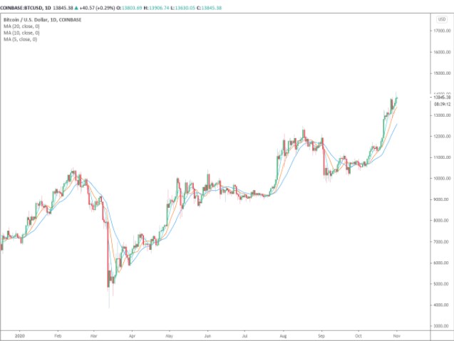 Geçtiğimiz yıla ait günlük Bitcoin fiyatı tablosu. Kaynak: TradingView.com