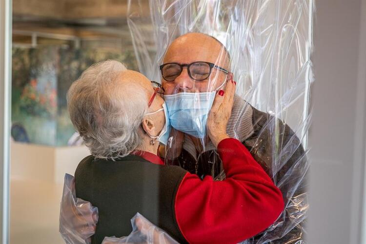 Dünyadan haber ajanslarının servis ettiği fotoğraflarda bakımevlerinde yakını bulunan İtalyanların büyük önlemler altında sevdikleriyle buluştuğu anlar üzüntü yarattı.