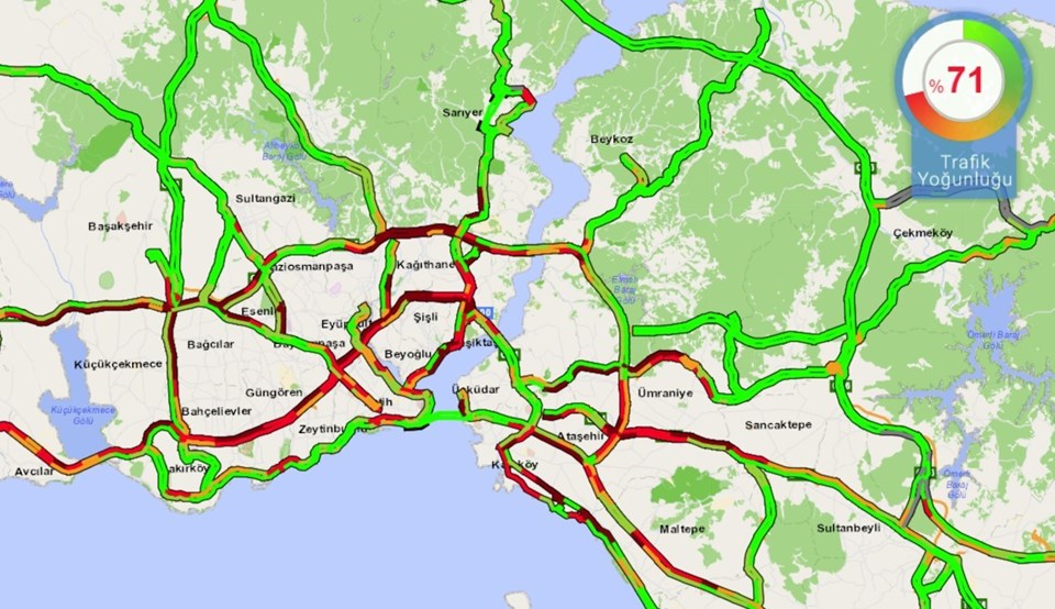 Ramazan öncesine denk gelen iş çıkışında trafik yoğunluğu saat 17.40 itibariyle yüzde 71'e ulaştı.