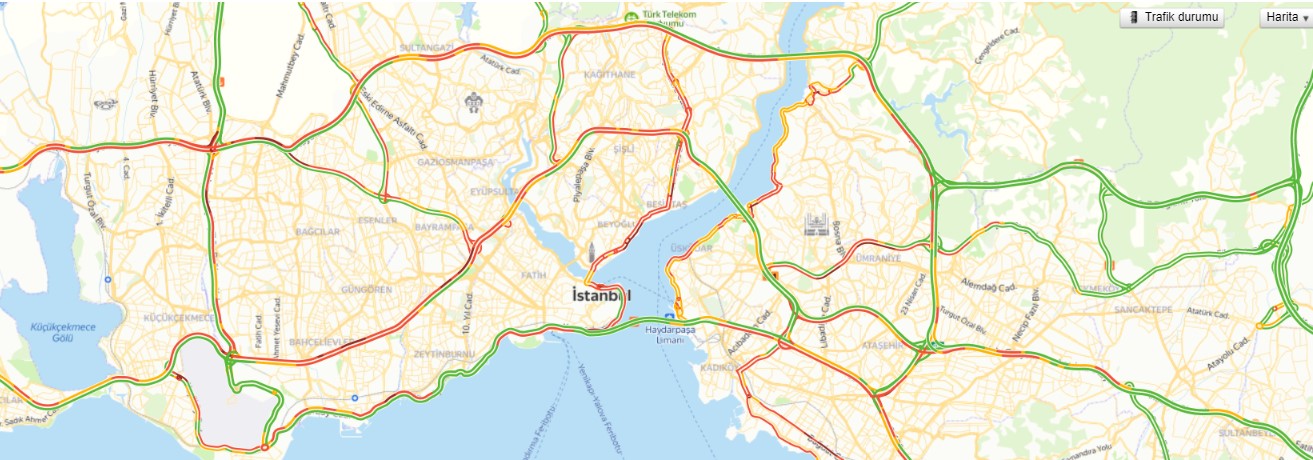 Kısıtlama öncesi birçok noktada trafik yoğunluğu yaşanıyor. Kadıköy D-100 Karayolu her iki yönde araçların dur-kalk şekilde ilerlediği görüldü. İstanbul Büyükşehir Belediyesi'nin trafik yoğunluk haritasına göre saat 15.45 itibariyle yoğunluk yüzde 69 olarak ölçüldü.