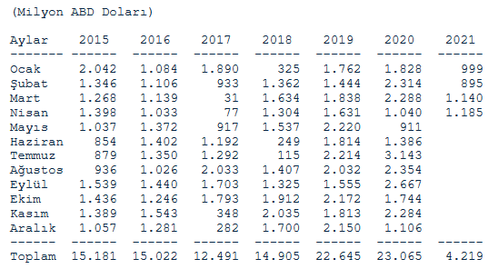 İhracat reeskont kredilerinin döviz rezervlerine katkısı Nisan ayında 1 milyar 185,17 milyon TL oldu.