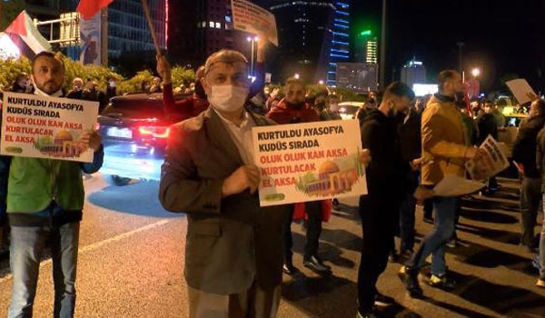 İsrail'in Mescid-i Aksa'da namaz kılanlara müdahalesini ve İsrail Başbakanı Binyamin Netanyahu'nun açıklamalarını protesto etmek isteyen yüzlerce kişi, gece saatlerinde İsrail'in Beşiktaş'taki İstanbul Başkonsolosluğu önünde bir araya geldi.