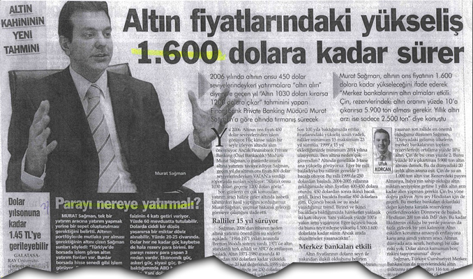 “ALTIN İLE İLGİLİ 1600 DOLARLIK TAHMİN YAPTIĞIMDA DÜNYADA BÖYLE BİR ÖNGÖRÜ YOKTU”