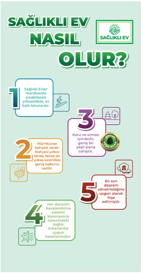 1- Birincisi yüksek katlı olmayacak. İhtiyaç duyulduğu anda yürüyecek çıkılabilecek yükseklikteki evlere sağlıklı ev diyoruz.