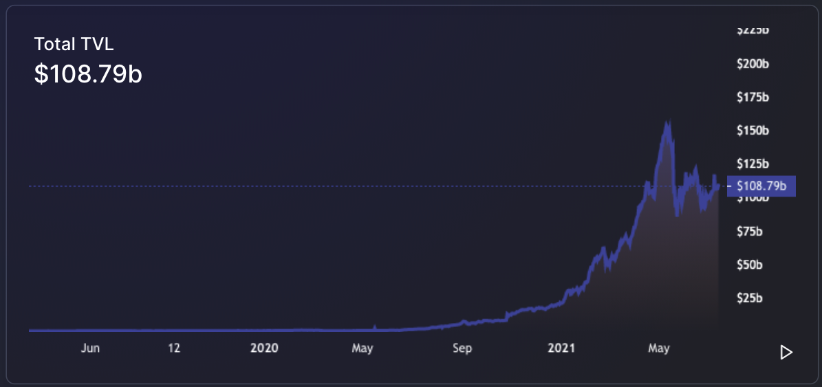 TVL verisinde son iki ayda kabaca yüzde 30'luk düşüş görünse de, önceki yıldan bu yana 2,02 milyar dolardan 110 milyar dolara büyüme gözlendi. Bir başka deyişle DeFi sektörü bir yılda yüzde 5.500'lük artış yakaladı.