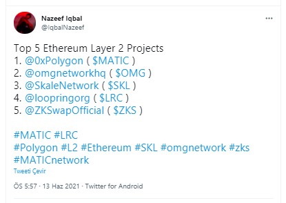 DeFi sektöründe görülen diğer yükseliş eğilimleri, Ethereum (ETH) ölçeklendirmesinin artışı ve daha düşük işlem ücretleri sunan Polygon (MATIC) gibi ikinci katman çözümlerinin yükselişi olarak kayda geçti.