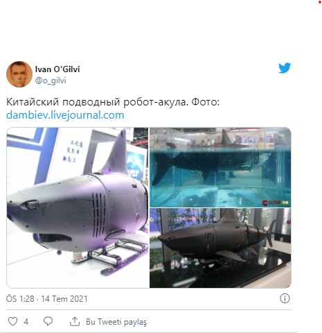 Özellikle dış tasarımıyla dikkatleri üzerine çeken 'köpekbalığı robota' ait yeni fotoğraflar Ivan O'Gilvi'nin Twitter hesabında paylaşıldı.