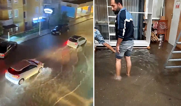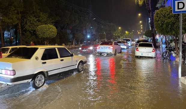 Fethiye'de dün saat 20.00 sıralarında başlayan kuvvetli yağış, aralıklarla etkili oldu. Cumhuriyet Mahallesi, Çarşı ile Dispanser caddelerinde bazı ev ve iş yerlerini su bastı.