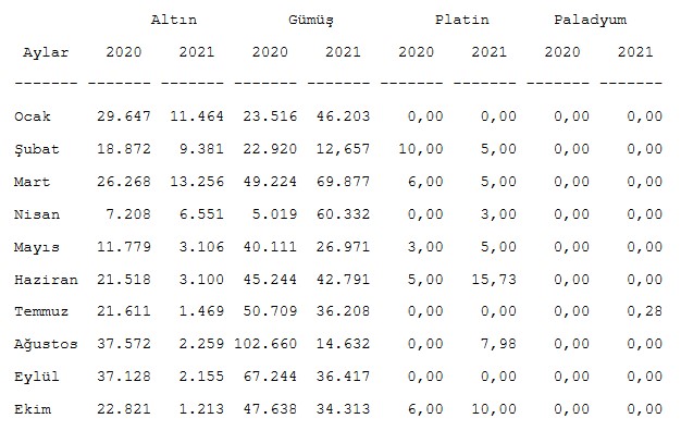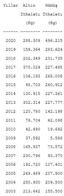 Borsa İstanbul Kıymetli Madenler Piyasası verilerine göre, aynı ayda gümüş ithalatı 34 bin 313 Kg oldu. Geçen yılın aynı ayında gümüş ithalatı 47 bin 638 Kg olmuştu.