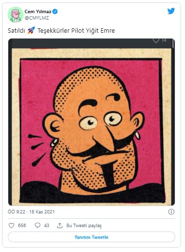 Yılmaz, sadece 7 dakika sonra "Satıldı. Teşekkürler Pilot Yiğit Emre" sözleriyle NFT'lerinden birinin satıldığını açıkladı.