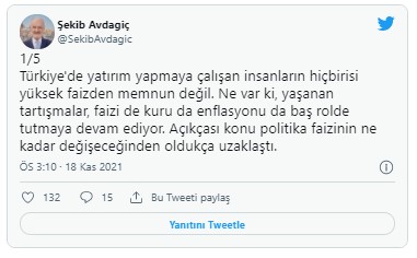 "Türkiye'de yatırım yapmaya çalışan insanların hiçbirisi yüksek faizden memnun değil. Ne var ki, yaşanan tartışmalar, faizi de kuru da enflasyonu da baş rolde tutmaya devam ediyor. Açıkçası konu politika faizinin ne kadar değişeceğinden oldukça uzaklaştı.