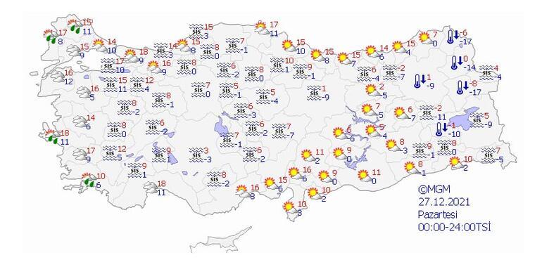Parçalı bulutlu geçeceği tahmin ediliyor. Sabah saatlerinde bölgenin iç kesimlerinde buzlanma ve don ile birlikte yer yer pus ve sis bekleniyor.